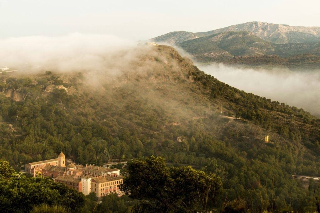 Continúa esta carretera entre perfumes de pinos, romeros y tomillos para adentrarse en las estribaciones de Sierra Espuña, en donde emerge en armonía con la naturaleza el conjunto arquitectónico de «la Santa». Desde allí se accede hasta la villa medieval de Aledo por una carretera envuelta, igualmente, de suave vegetación mediterránea.
